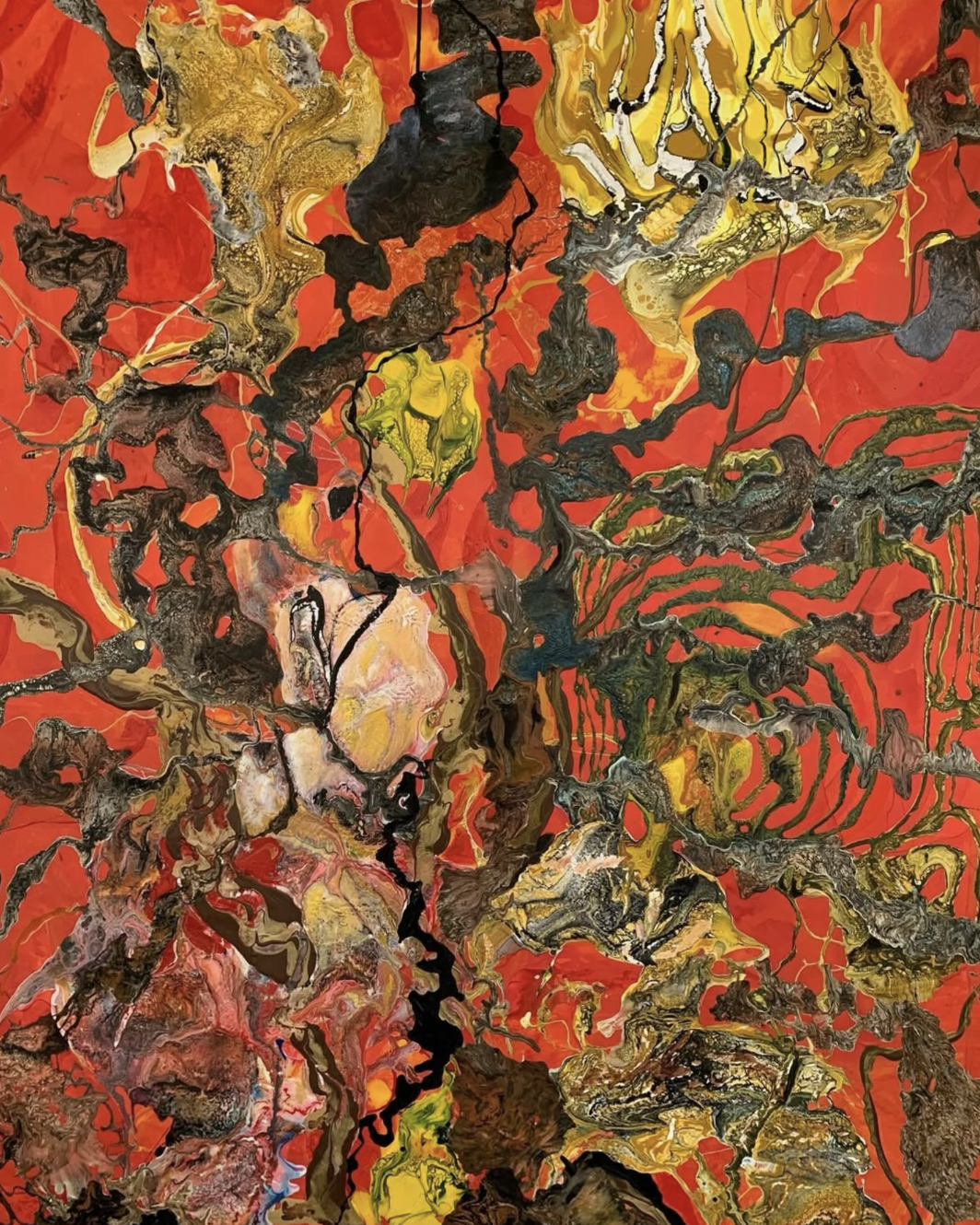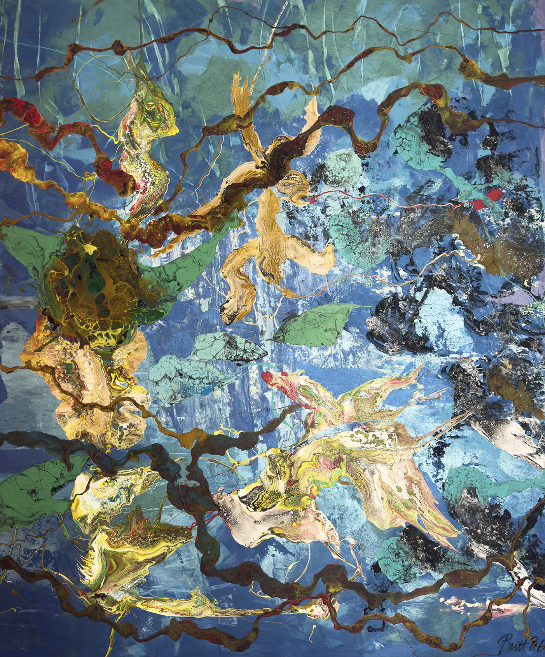 “I always start by putting all my colors around me. Then I just let things happen. I really don’t have any idea of what I’m going to do. Everything to start feels a little chaotic and then I slowly make order from the chaos and give it structure. Sometimes I’m not even aware of what I’m doing.”—Britt Boutros-Ghali