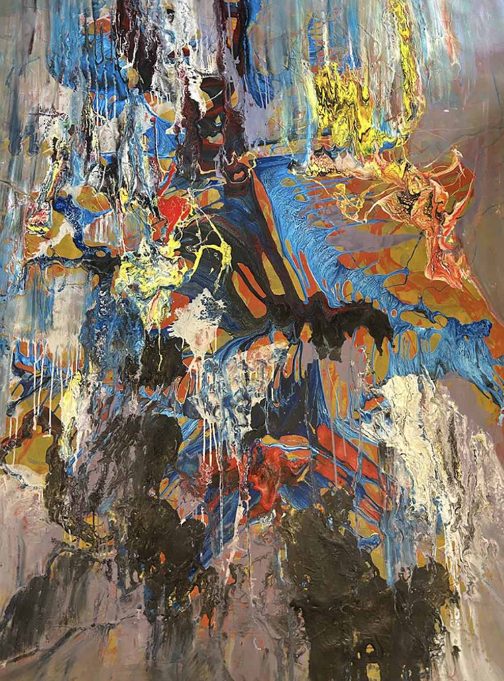 “Forever Is Composed of Nows”, Janet Rady Fine Art, London, UK (Group Show)Boutros-Ghali’s art, characterized by vibrant colors, abstract forms and large-scale energetic paintings, draws inspiration from Egypt's rich and exotic culture. Employing "action painting", her work embodies a sense of spontaneity and creativity. The physicality of her work is evident through her seasoned and competent use of materials — the subject and outcome are determined through methodical structure, yet spontaneous in the outcome, hence allowing for the nature of the materials and her use of them to unfold and tell their mysteries.