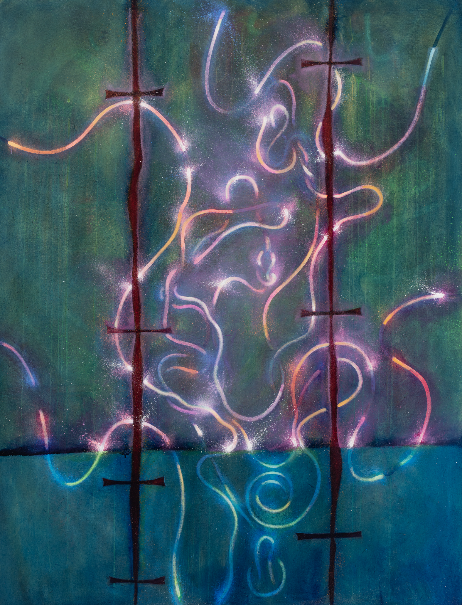 For painters, the treatment of lines is one of the fundamental hallmarks of great picture-making. The artist’s handling of lines—whether fine and delicate delineated by the Frenchman Jean Dominique Ingres, or bold and powerful, as expressed by the American Franz Kline—has been a lifelong fascination which culminated in the most recent body of work, ‘Everything Is Made of Light’. The series itself stems from a profound belief that we humans are all connected via a primordial, all-powerful, and invisible life force that emits telling energies aimed for our benefit yet to our own detriment and delusion in this modern world we are too often disconnected from. These paintings, via an expressive line embodied in the art, are a reminder that we are all made of light—and in light, the beauty of the divine is made possible to behold. —de la Haba