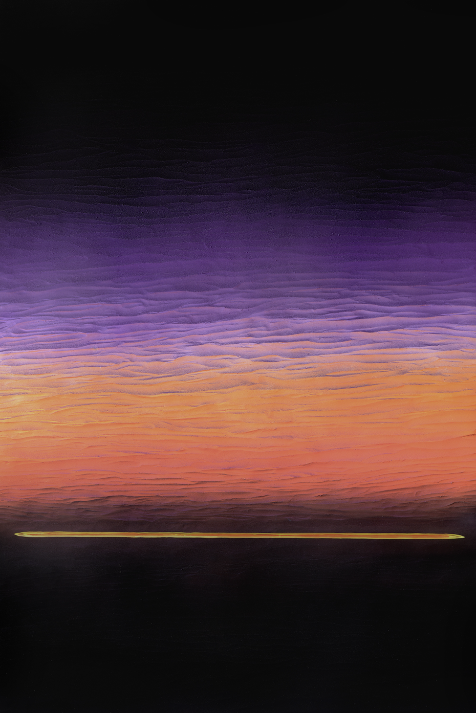 At its core, the Horizon Line series is deeply personal for Hudson. The decision to create works that appear humble and unassuming reflects his own development as an artist. Through an instinctive and risk-taking process, he produces paintings whose quiet simplicity conveys a sense of timelessness and opens the door to multiple interpretations. These horizon lines can be many things at once—landscapes, seascapes, pathways, sunsets, sunrises, or even glimpses into outer space.