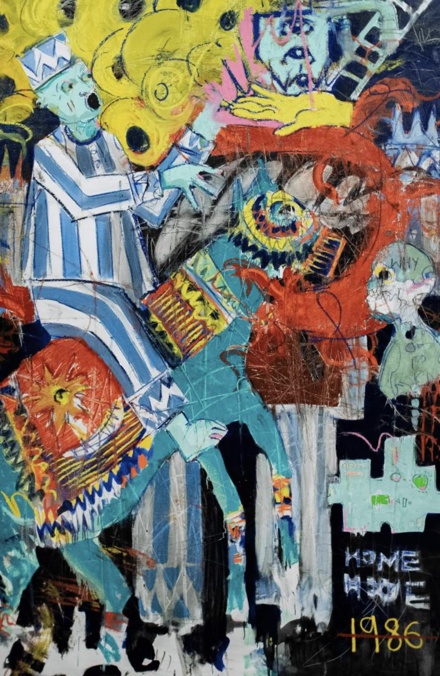 Oil, oil stick, pigments, graphite on canvas